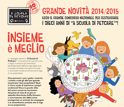 Il progetto #ascuoladipetcare di Purina di cui vi ho già parlato qui e qui, che festeggia i suoi primi 10 anni, ha premiato la storia vincitrice del concorso nelle scuole Insieme è meglio. Ogni classe iscritta era invitata a mettersi nei panni di un animale e raccontare una storia di amicizia, amore e cura che lo lega al suo proprietario. Ogni racconto è arricchito da disegni e illustrazioni. Il concorso è stato un grande successo e ha visto una partecipazione davvero entusiasta da parte di ben 370 classi su 3.500 che hanno aderito alla campagna promossa in collaborazione con Giunti.