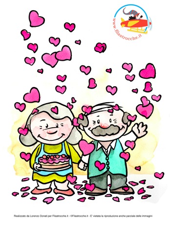 Scarica il disegno di esempio con i nonni e tanti cuori colorato