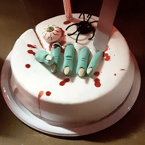 Il tocco finale del party è dato dalla torta horror, che deve troneggiare sopra un buffet pieno di autentiche schifezze: cocktail della strega, fantasmi, mostri da mangiare e occhi di vampiro commestibili.