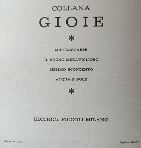 Altri libretti di Jolanda Colombini Monti nella stessa collana “Gioie” della Casa Editrice Piccoli di Milano: