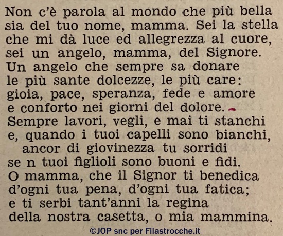 Se cercate delle Filastrocche per la Festa della Mamma in italiano, scritte dagli utenti del nostro sito, cliccate qui.