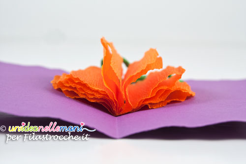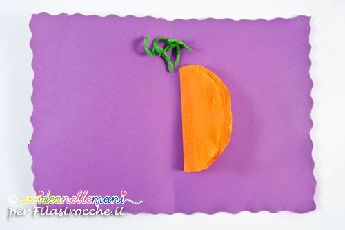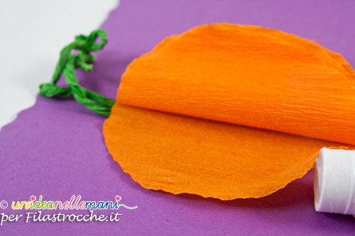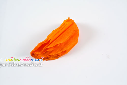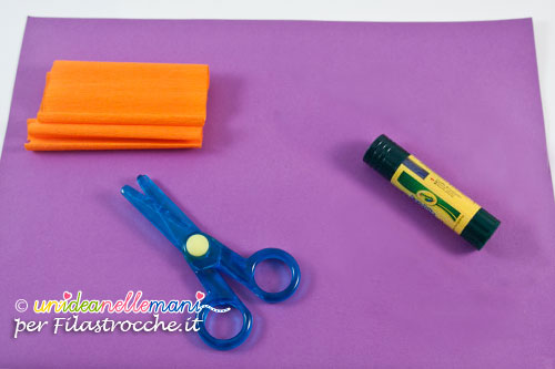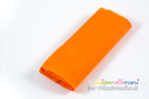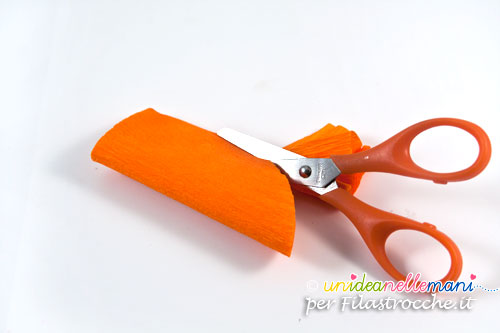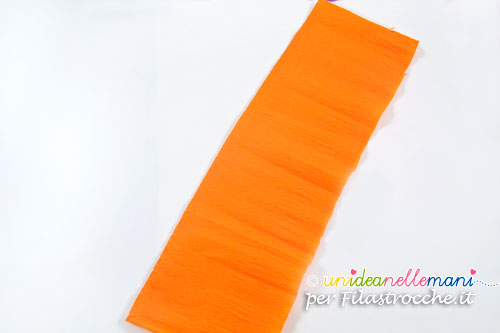 Tagliare striscia di carta crespa arancione larga circa 9cm e lunga 25 o 30 cm.