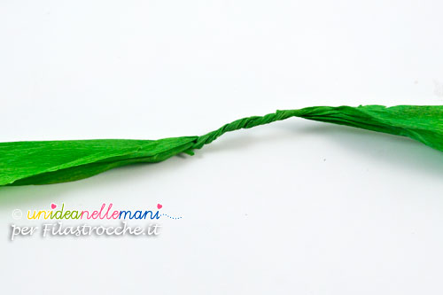 Arrotolare una piccola striscia di carta verde prima su se stessa e poi intorno ad un dito o ad una matita. Servirà per farle prendere la tipica forma a ricciolo.