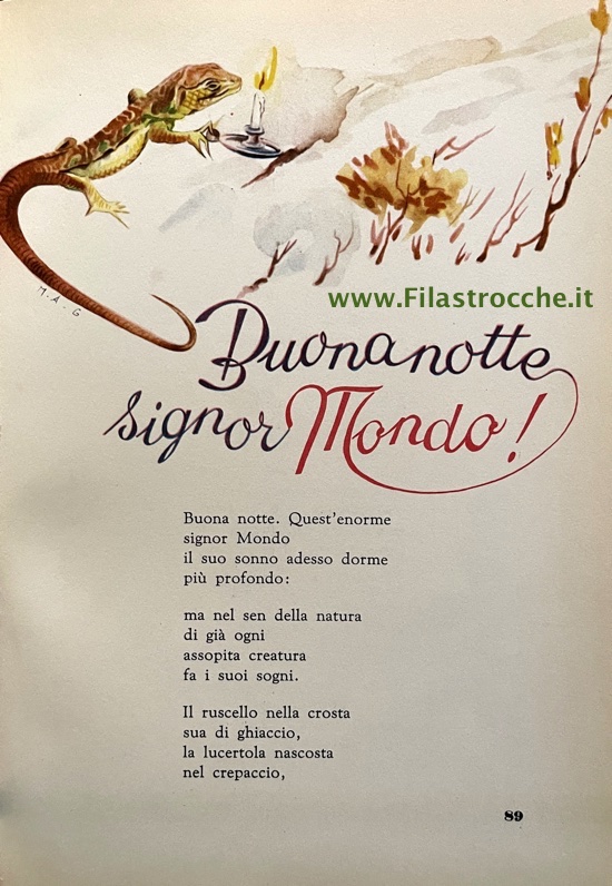 Tratta da: Canzoncine di tutti i mesi – Strofette per ragazzi – Società Editrice Internazionale (Novembre 1954) – Autore: Franco Bianchi (Sancio Pancetta) – Illustrazioni: A. Mossello Guadagni