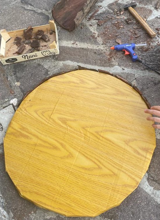 È stato poi realizzato un vassoio dove appoggiarli cercando di creare una sorta di ceppo, decorato con pigne, aghetti, fiorellini...