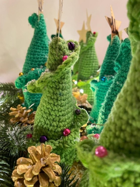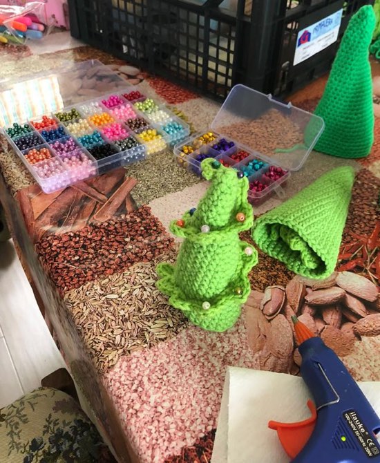 Se non si è abili con l’uncinetto, i coni per realizzare gli alberelli possono essere sostituiti da coni in cartone o gomma eva.