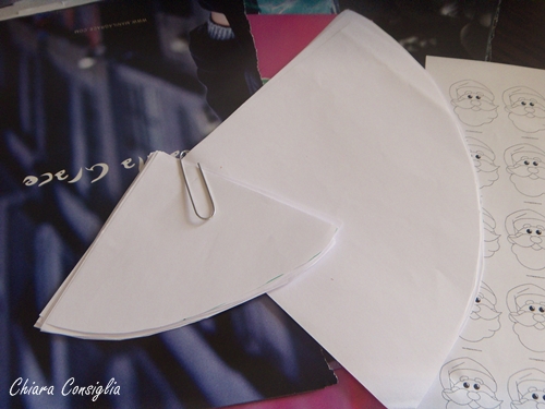 Sui coni piccoli ho incollato e stelline, su quelli grandi le faccine di Babbo Natale.