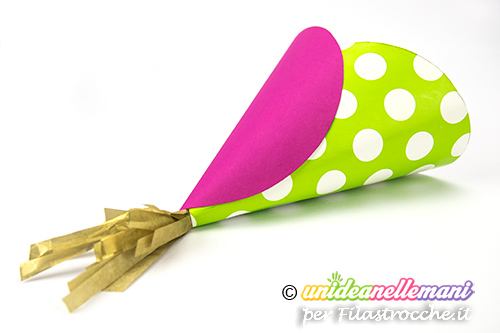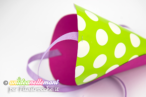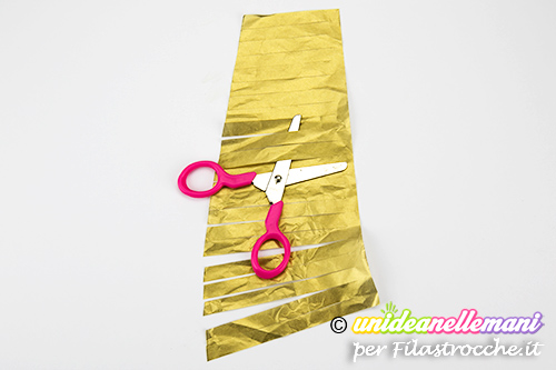 Mentre attendi che si asciughi la colla, realizza la nappina ritagliando sulla carta crespa un trapezio lungo e alto quanto vuoi