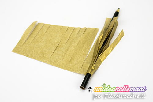 Posiziona una matita parallela alla base e falla rotolare per tutta la lunghezza avvolgendogli intorno intorno la carta crespa.