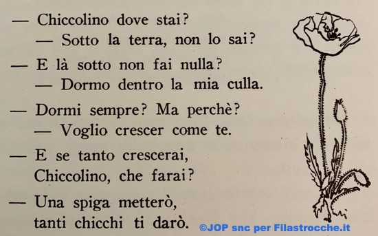 Grazie Mariella! La filastrocca che ti recitava la tua dolce mamma, l’abbiamo qui: https://www.filastrocche.it/contenuti/la-spiga/ e anche qui: https://www.filastrocche.it/contenuti/chiccolino-2/