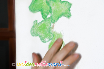 Con i gessi nei colori che più preferite, lasciate che i vostri ragazzi ne colorino l’interno. I gessetti sono facili da stendere anche con le dita e le sfumature tra i colori vengono che è una meraviglia!