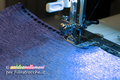 Unisci i due lati della calza passando la carta sotto la macchina da cucire, utilizzando i punti ricamo a piacere.