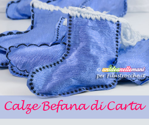 Per esempio è possibile fare una bella sorpresa ai bambini creando delle originali calze della Befana con la carta.