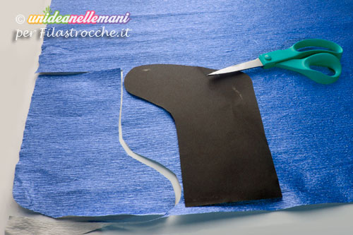 Appoggialo più volte sulla carta (io ho usato la carta crespa) prima in un lato poi nell’altro e ritaglia la carta.