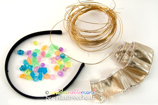 Ti spiegherò infatti come fare la corona da principessa con le tue mani (e con quelle di tua figlia se vuoi coinvolgerla in questa attività) usando pochi materiali come un semplice cerchietto per capelli, un nastrino di stoffa, delle perline colorate e un piccolo pezzetto di filo di metallo.