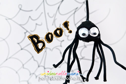 Cioè sì, è il classico ragno (in fondo un ragno è un ragno) e quindi lo possono fare anche i bambini a scuola con la maestra o a casa con i genitori, e utilizzarlo come decorazione da appendere alla finestra, a una porta, ad una mensola, magari vicino a una grossa ragnatela finta (o vera se hai la “fortuna” di averne una in casa 🙂 ).