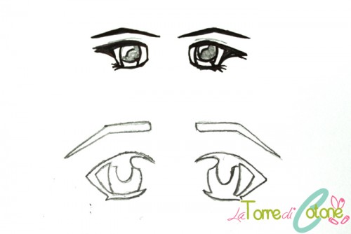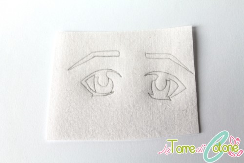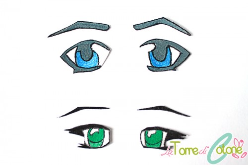 Disegnate a matita degli occhi in stile cartoon su un foglio di carta delle dimensioni che vi servono. Se non siete molto abili nel disegno, stampatene qualcuno direttamente da internet, ad esempio cercando su Google la parola “manga eyes”.