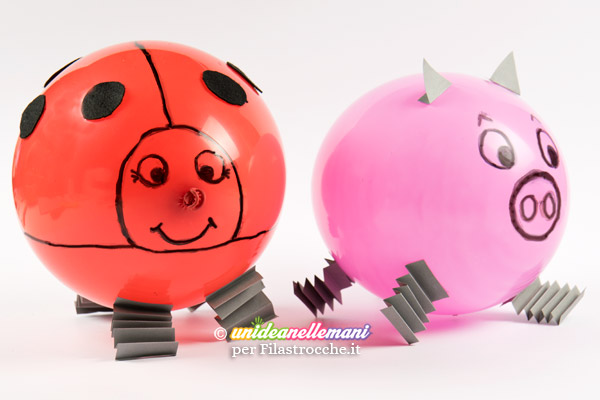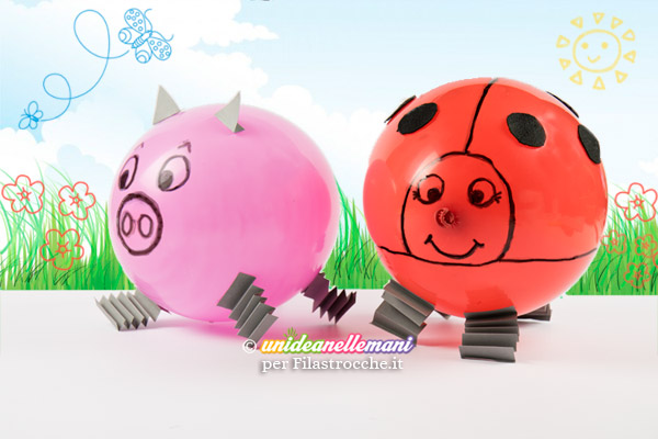 Sì, creare insieme ai bambini questi simpatici animaletti è possibile utilizzando semplicemente i palloncini tondi di vari colori, cartoncino per creare i vari elementi del corpo (orecchie, zampe, occhi , naso e altro…) e pennarelli per disegnare i tratti dell’animale.