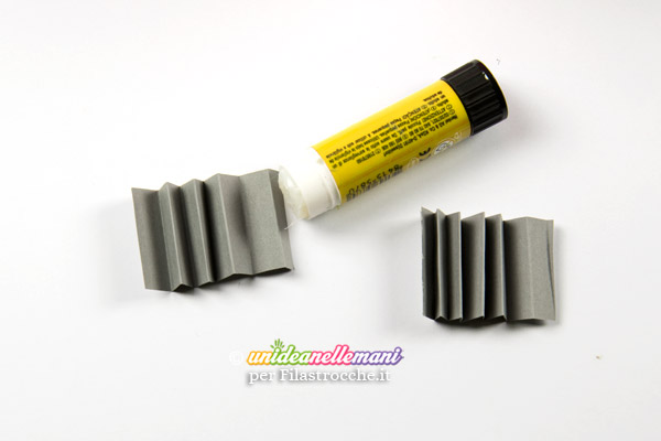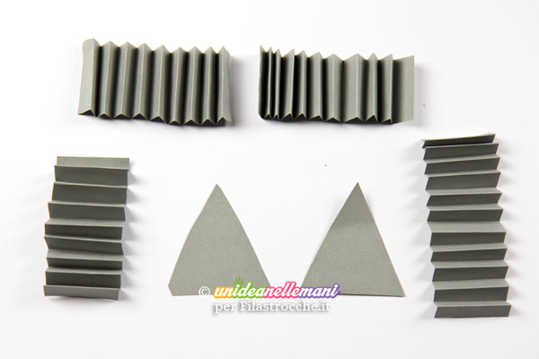 Per fare le zampe tagliare delle strisce di carta del colore adatto e piagarle a fisarmonica