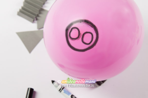 Per i tratti dell’animale che non possono essere fatti con la carta disegnare direttamente sul palloncino con un pennarello nero indelebile