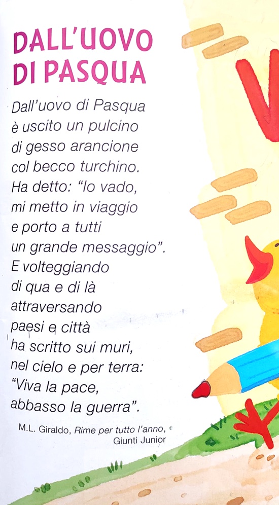 In quest occasione vorrei anche segnalare che l’autore della filastrocca D’auovo di Pasqua e’ GIANNI RODARI e non di Maria Loretta Giraldo!