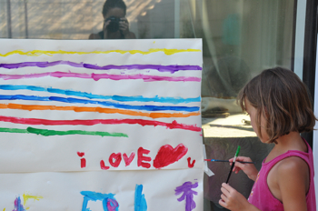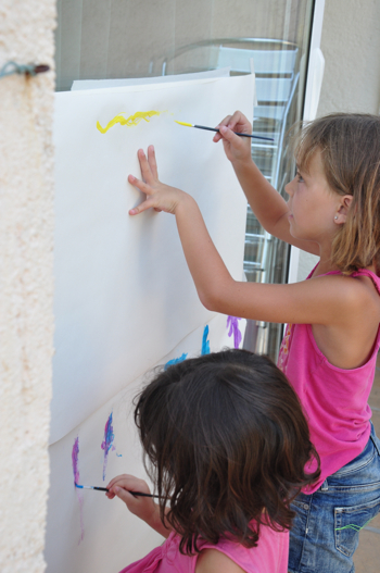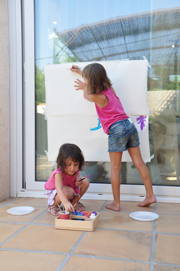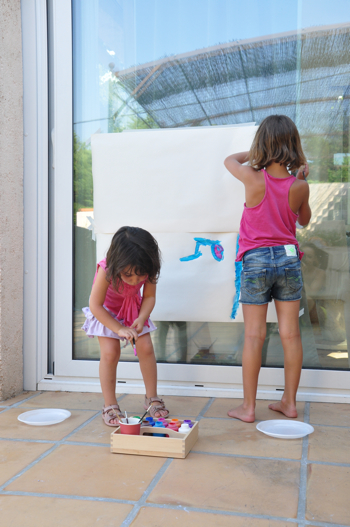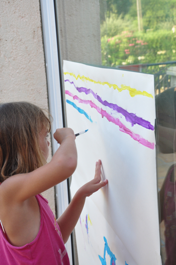 Avreste dovuto vedere l’espressione delle mie bimbe quando hanno trovato questi grandi fogli appesi alla vetrata, e un set completo di Crayola Washable Kids’ Paint a loro disposizione.