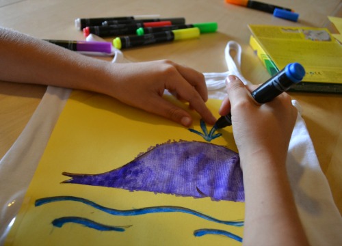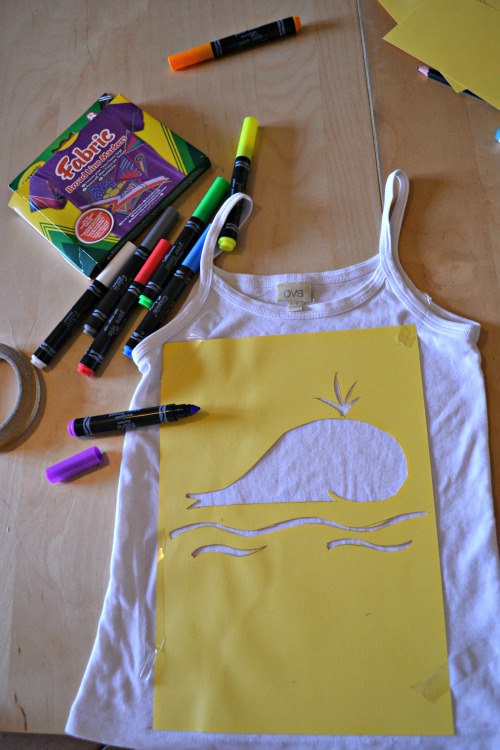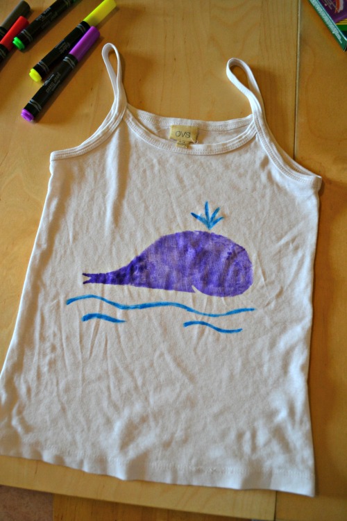 Io ho preparato qualche sagoma, poi Cecilia ha scelto quella della balena e realizzare la sua canottierina è stato semplicissimo.