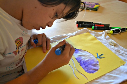 Le bimbe si sono divertite moltissimo: oggi vi propongo di colorare con i vostri bimbi delle canottierine o delle t-shirt con la tecnica dello stencil.