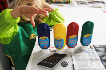 Quando ho ricevuto del materiale creativo da Crayola, la prima cosa su cui si è posato lo sguardo di Viola (e il mio) sono stati dei tubetti di colore grandi e ‘cicciotti’ li abbiamo riconosciuti come colori a dita, che lei aveva già sperimentato in occasione di una fiera, e le si sono letteralmente illuminati gli occhi.