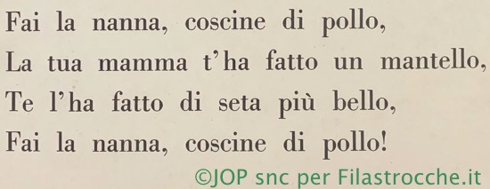 Da: Ambarabà Ciccì Coccò - Filastrocche (Raccolta di filastrocche e cantilene da un'idea di L. Sostegni) - Edizioni A. G. A. (Arti Grafiche Associate - Cuneo - 1968)