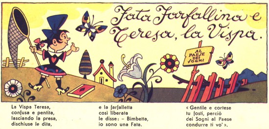 Antonio Rubino, autore di questo testo, si ispirò per la stesura alla famosa poesia “La farfalletta (La vispa Teresa)” scritta da Luigi Sailer intorno al 1850.