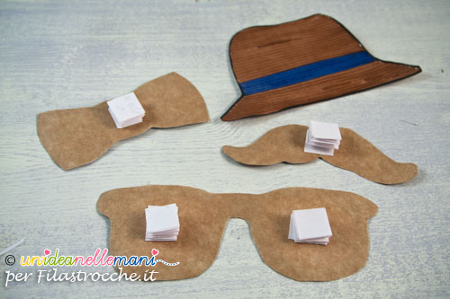 Ritaglia le sagome del cappello, occhiali, bafffi e papillon