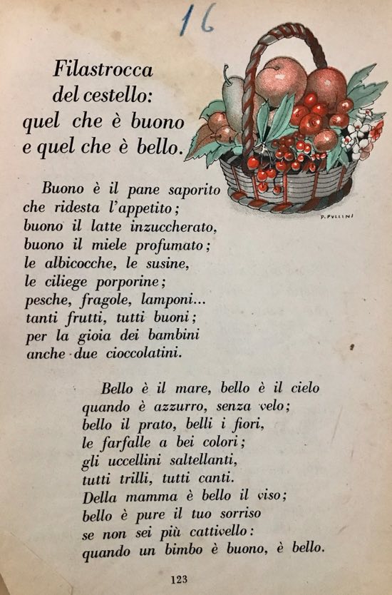 Se vi piace questa filastrocca, dovete ringraziare Liliana (1 gennaio 2003). Testo tratto da: Il libro per la prima classe - Compilato dalla Signora Dina Belardinelli-Bucciarelli - Illustrazioni di Pio Pullini - La Libreria dello Stato (1935)