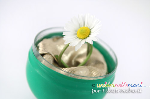 Taglia la parte centrale del fiore e infilaci in mezzo il contenitore.