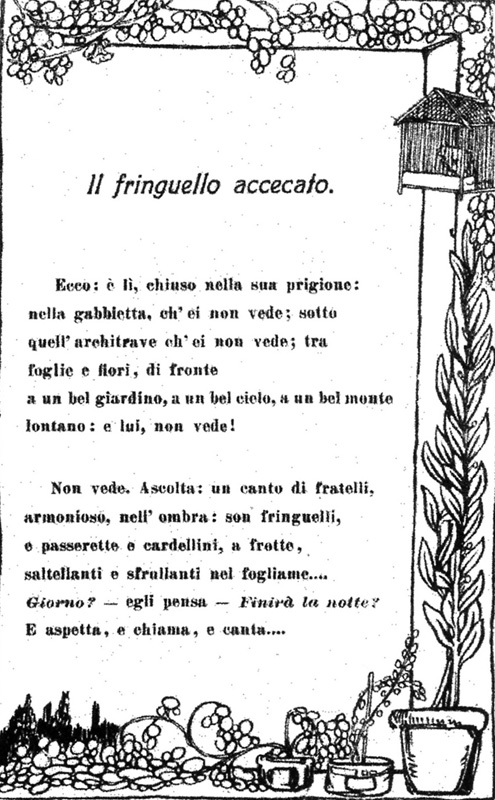 Immagine tratta dal libro: “Sentimento e pensiero. Libro di lettura per gli alunni e le alunne della seconda classe elementare” di Francesco Bonatto e Ostilio Lucarini (Firenze, R. Bemporad & Figlio, 1916)