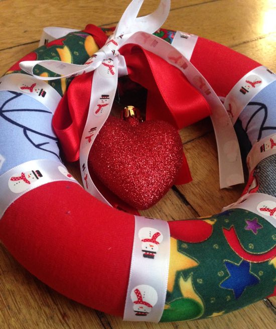 A piacere decorate con nastri o con una pallina di Natale. Per esempio nella ghirlanda della foto abbiamo usato una decorazione con un cuore rosso.
