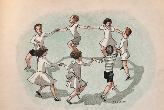 Un gruppo di bambini tenendosi per mano, girano in tondo e cantano una canzoncina, che varia da regione a regione.