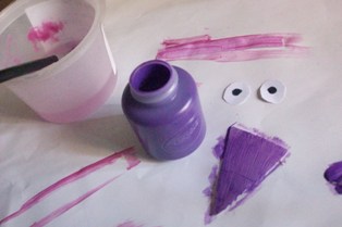 Mentre aspettate che asciughi bene il corpo, potete occuparvi di creare gli occhi con tondini di carta e le orecchie con cartoncino perchè siano un pò più rigide e di colorarle sempre con la tempera.