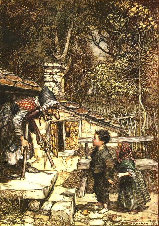 Non sapendo che la vecchina era una strega che attirava i bambini per poi mangiarli, i piccini entrarono.