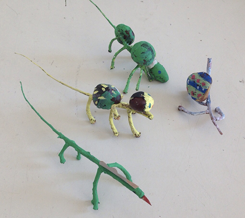Cominciamo con l’osservare le forme del nostro bottino per scegliere i pezzi più adatti per il castagnanimale che vogliamo provare a costruire. Inutile dire che il primogenito è partito in quarta con mostri, draghi e dinosauri, mentre la piccola ha optato per una famiglia di coccinelle e una specie di ape.