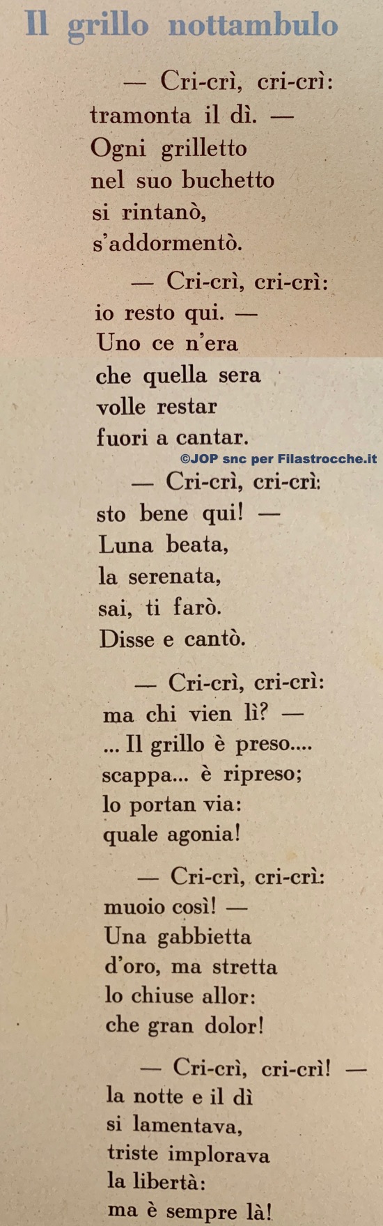 Leggiamo insieme: Il grillo nottambulo di Arpalice Cuman Pertile
