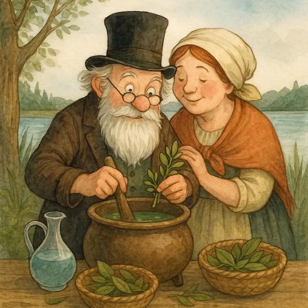 mescola erbe acqua e foglie