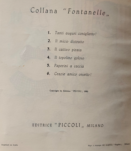 Altri libretti di Jolanda Colombini Monti nella stessa collana “Fontanelle” della Casa Editrice Piccoli di Milano: