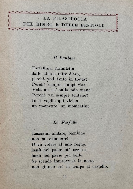 Altre filastrocche contenute nel libro: “Le filastrocche cantate col tempo” di Lina Galli: