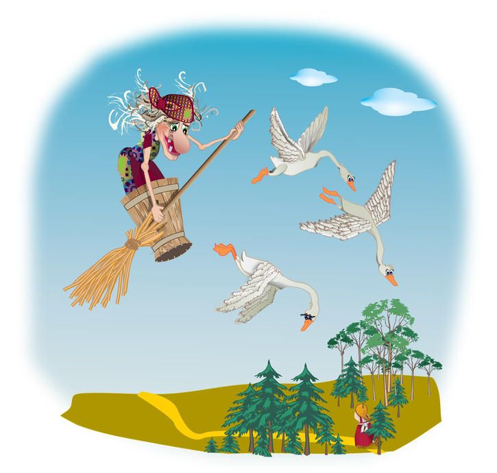 C’era una volta la vecchia Gertrude, che viveva col suo branco di oche in una radura fra i monti. La radura era circondata da un grande bosco e ogni mattina la vecchia prendeva le stampelle e arrancava nel bosco. Faceva erba per le sue oche, raccoglieva frutta selvatica e portava a casa tutto da sola. Se incontrava qualcuno, lo salutava, ma la gente non le si avvicinava volentieri, perché credeva fosse una strega.
