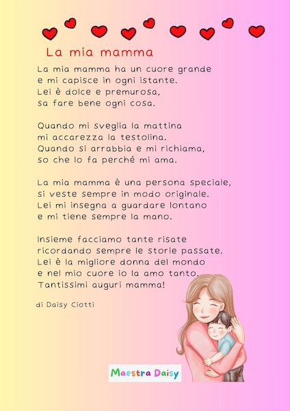 Se cercate delle Filastrocche per la Festa della Mamma in italiano, scritte dagli utenti del nostro sito, cliccate qui.
