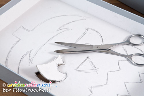 Con le forbici ritaglia le sagome disegnate e lascia aperti i fori.