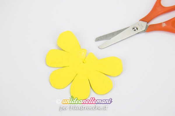 Disegna sulla gomma crepla o su cartoncino un fiore con otto petali e ritaglialo seguendo il disegno che hai fatto.