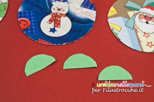 Con un cartoncino di colore diverso, ritaglia dei piccoli semicerchi che incollerai a coprire il filo nella sommità della palla.