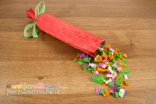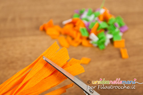Se non hai coriandoli a disposizione, taglia a strisce della carta colorata e fanne tanti coriandoli.